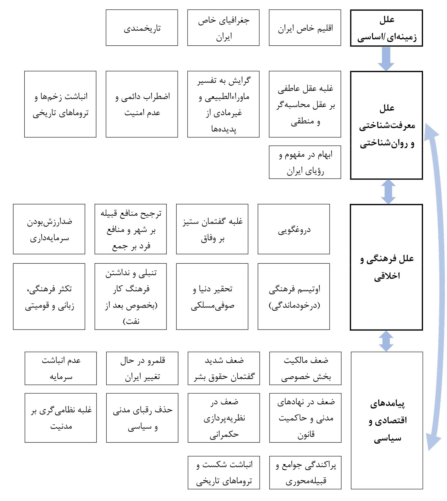 مسیر نوشتار چهار سطح از عوامل توسعه‌نیافتگی ایران