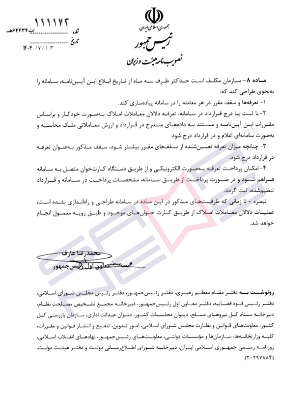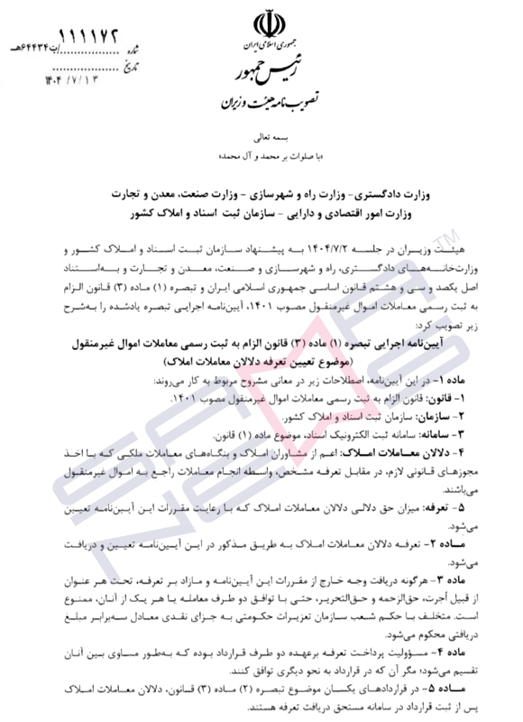 ابلاغ این مصوبه، مسیر فعالیت شفاف حدود ۷۰۰ هزار معامله ملکی سالانه در کشور را روشنتر میکند؛ بازاری که تا پیش از این، بهدلیل نبود ضوابط مشخص، محل بروز اختلافات فراوان میان مشاوران، خریداران و مستاجران بود.